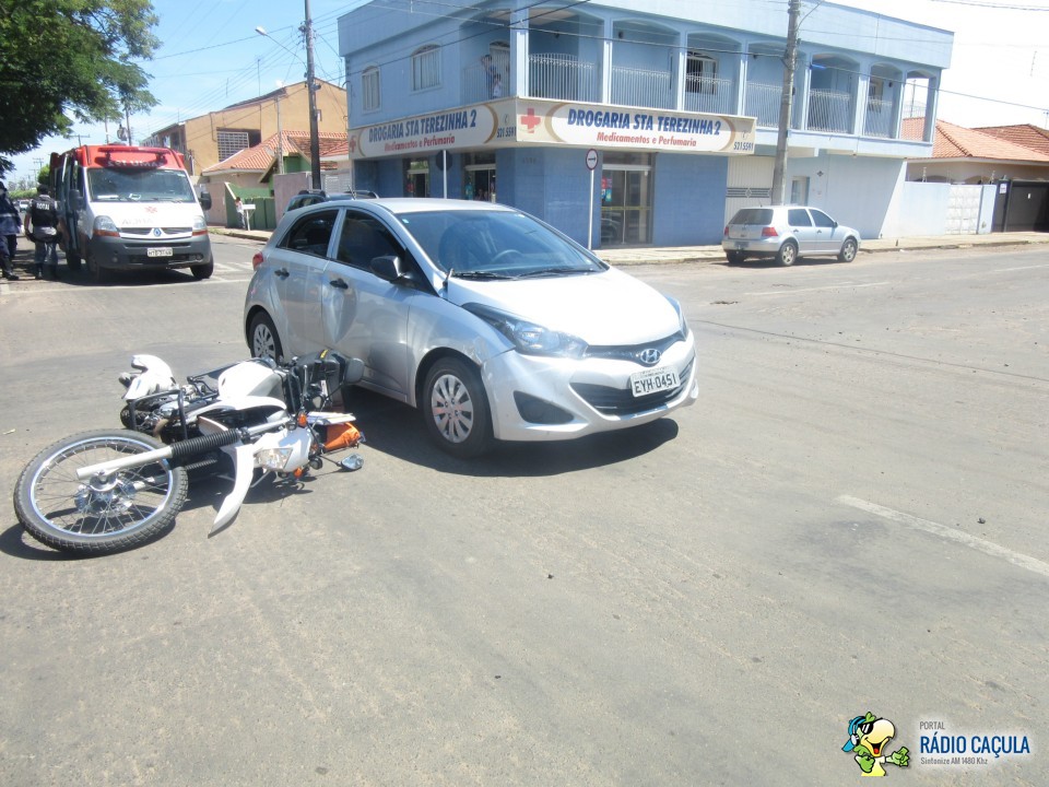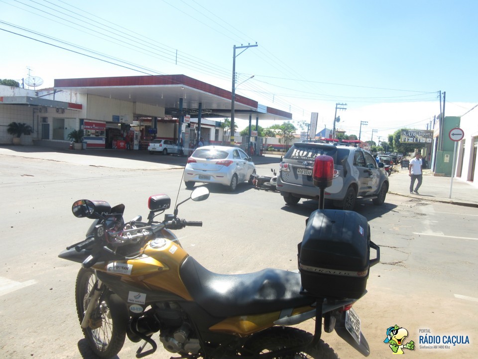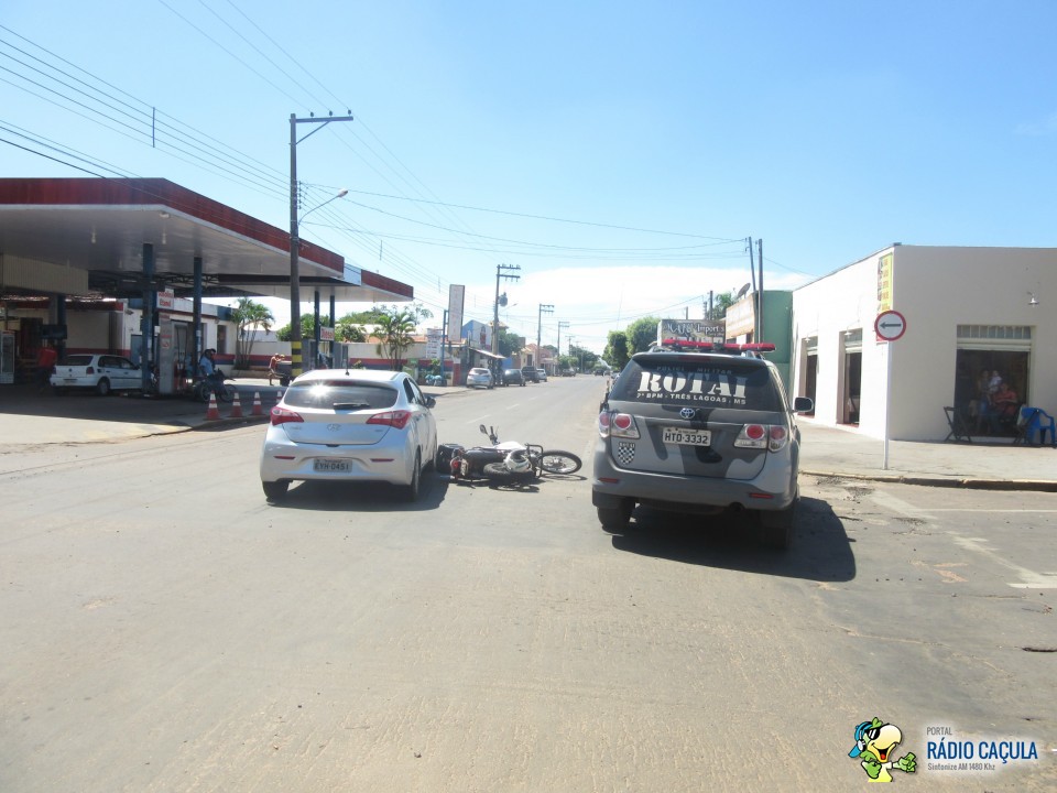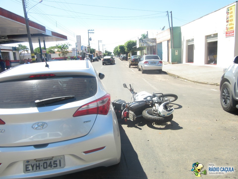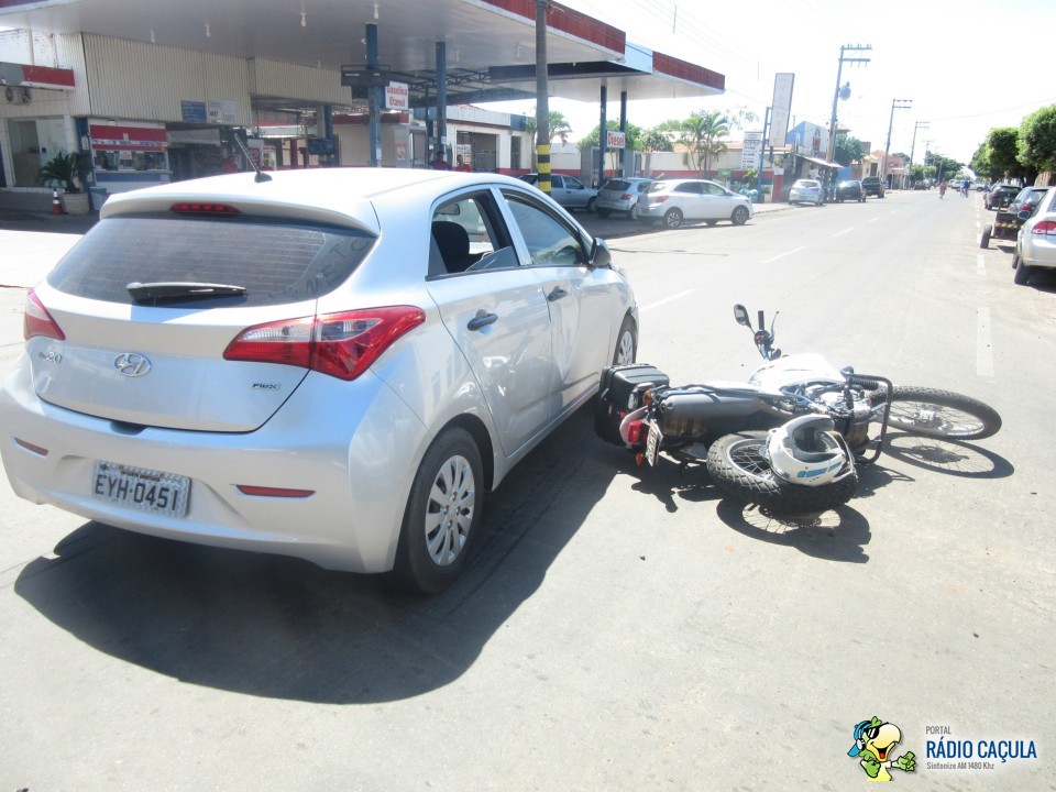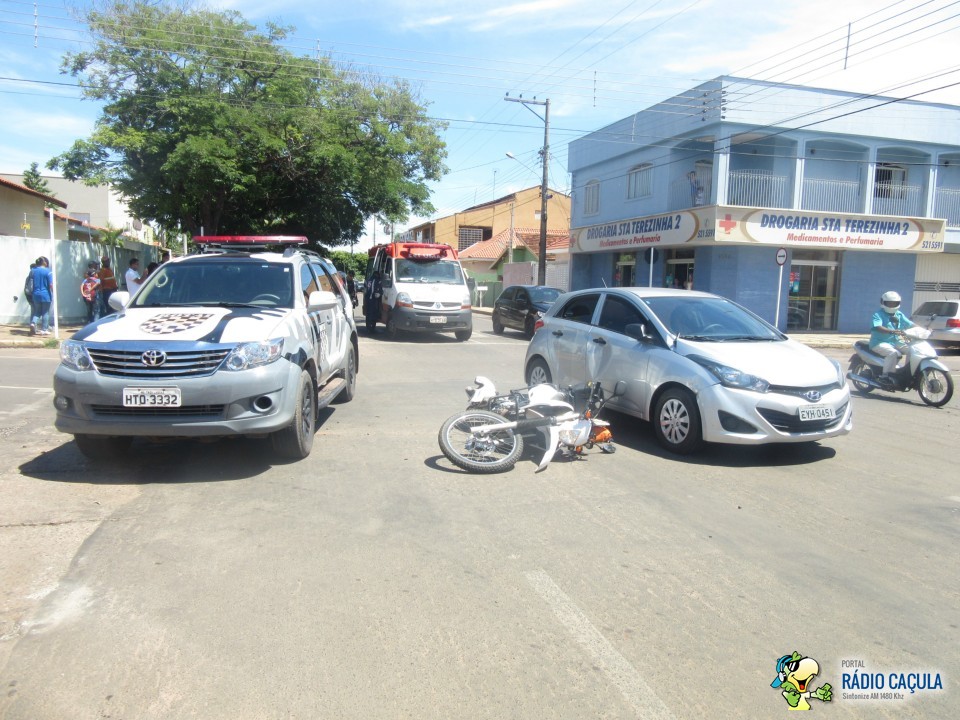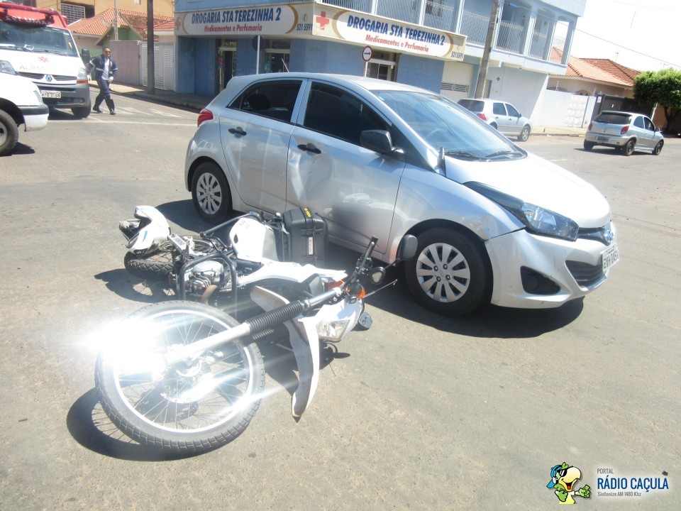 Na manhã desta quarta-feira (25) um acidente no cruzamento das ruas João Carrato e Eurídice Chagas Cruz envolvendo um veículo HB20 prata e uma moto Lander branca deixou um motociclista com suspeita de fratura no pé esquerdo.