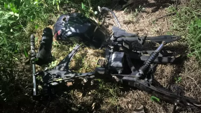 De acordo com a Polícia Militar, a equipe recebeu uma denúncia anônima informando sobre a existência de uma moto em estado de abandono no local. Uma equipe do Grupo Especial Tático de Motociclistas (GETAM) foi acionada e, ao chegar ao endereço indicado, encontrou apenas os restos da motocicleta.
