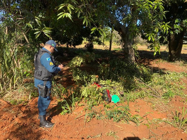 Policiais militares durante patrulhamento pelo bairro SetSul, observaram em um terreno um amontoado de galho suspeito. Durante averiguação, foi constatado que havia uma motocicleta de cor vermelha escondida no local.