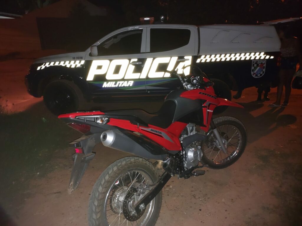 Na checagem do chassi da moto, constatou-se de que a mesma era produto de furto, realizado no primeiro dia de 2023. Questionado sobre, “Caloi” desconheceu a situação. Já em relação a pessoa que estava com ele no momento da abordagem, relatou ser uma pessoa de apelido “Ada“. Ambos já possuem passagens por furto, receptação, entre outros crimes. Momentos depois, a irmã de “Caloi”, proprietária da residência chegou no local e presenciou toda a situação.