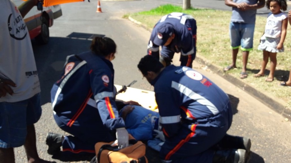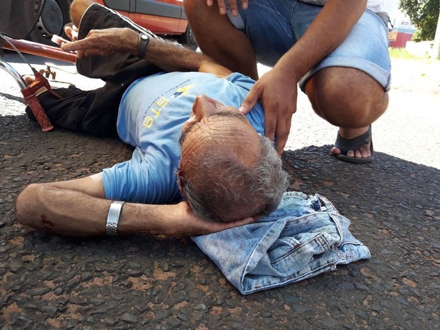 Um idoso, de 73 anos, ficou ferido na manhã deste domingo (18) ao ser atropelado por uma motocicleta no bairro Santos Dumont em Três Lagoas (MS). Ele foi socorrido pelo SAMU (Serviço de Atendimento Móvel de Urgência) com um corte na cabeça. O motociclista fugiu do local sem prestar socorro.
