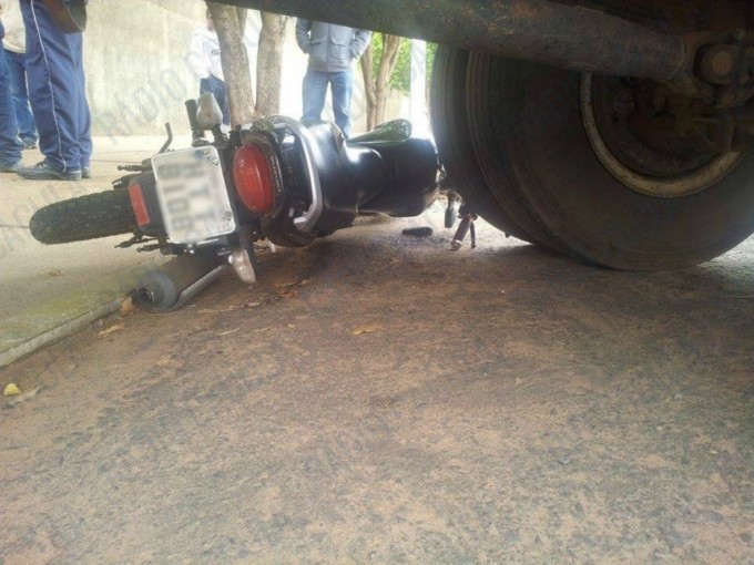 O motociclista estava trafegando na Av. Rosário Congro no sentido bairro/centro quando tentou fazer uma ultrapassagem pela a direita e acabou colidindo em um caminhão que estava entrando no pátio do Hospital Auxiliadora para entregar compras na cozinha.
