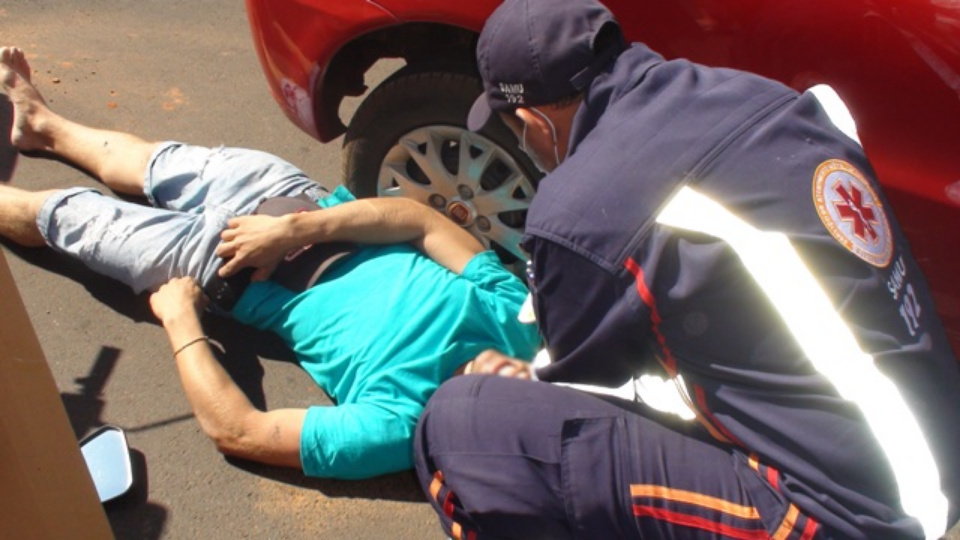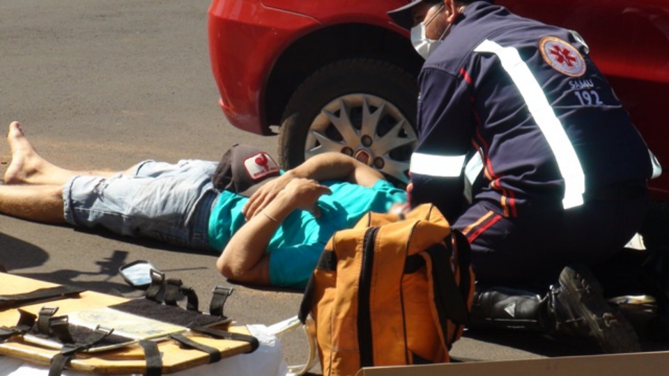 Foi por volta das 11h deste sábado (13) que um acidente entre um motociclista e um motorista de veículo de passeio mobilizou uma equipe do SAMU (Serviço de Atendimento Móvel de Urgência) no bairro Colinos em Três Lagoas.