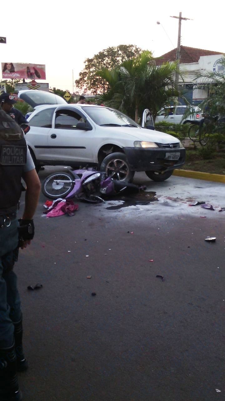 A vítima estava parada atrás de um veículo Saveiro placas de Três Lagoas, e devido ao impacto ela foi prensada entre os dois veículos. A motoneta ficou embaixo da roda dianteira do Celta e a parte traseira embaixo da VW/Saveiro, sendo que após o choque o veículo veio a pegar fogo.