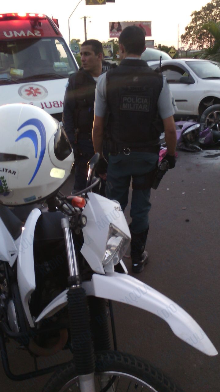 Conforme o boletim de ocorrência um veículo GM Celta, placas de Três Lagoas, conduzido por L.B.A.de 31 anos, trafegava pela Avenida Filinto Muller sentido Bairro Santos Dumont/ Centro, quando chocou-se contra a traseira de uma motocicleta Honda Biz, cor rosa que era pilotada por R.B.M. de 23 anos. O sinal da via estava fechado no momento do acidente e o autor não soube explicar os motivos.