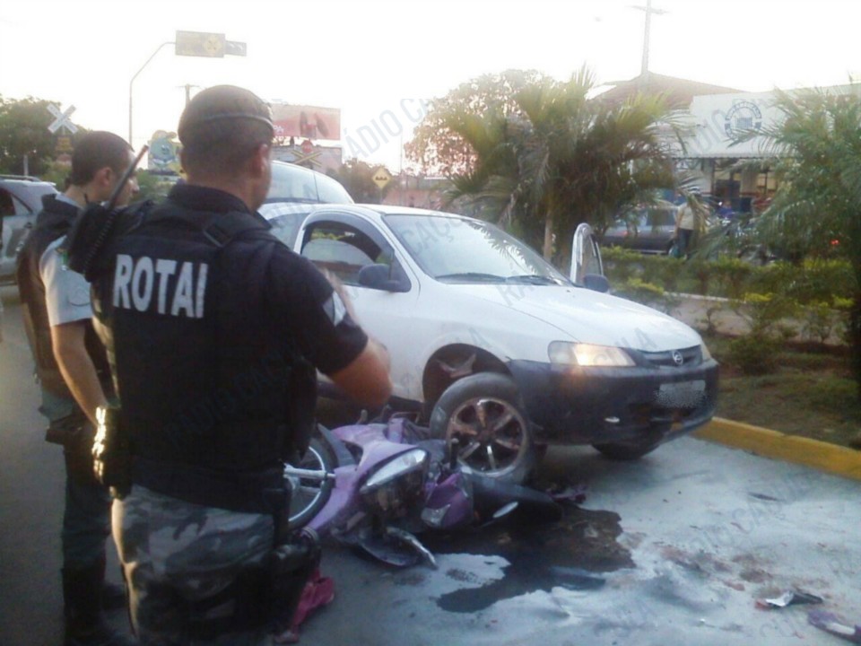 Motociclista é prensada por carro e moto pega fogo minutos depois em Três Lagoas