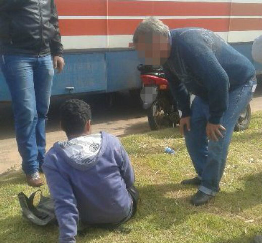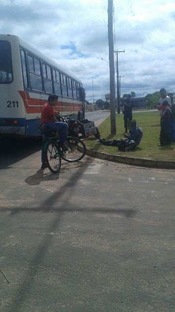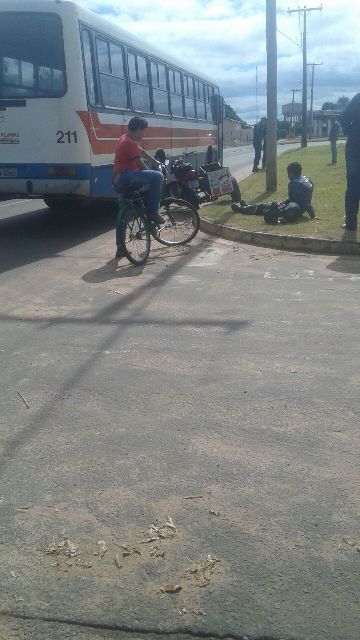 Um entregador de gás de aproximadamente 30 anos acabou se ferindo na manhã desta quarta-feira (27) quando transitava pela Rua Luis Spinelli e ao chegar ao cruzamento com a Rua Rafael de Haro, não conseguiu frear sua motocicleta e acabou invadindo a preferencial, sendo atingido pelo condutor do ônibus, que seguia no sentido bairro/centro.