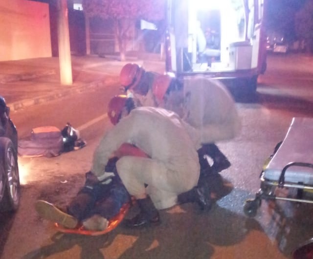 Um acidente de trânsito na noite do último sábado (25) deixou um motociclista de 60 anos ferido. Ele colidiu em um veículo que estava estacionado e teve de ser encaminhado pelo Corpo de Bombeiros até a Unidade de Pronto Atendimento (UPA).