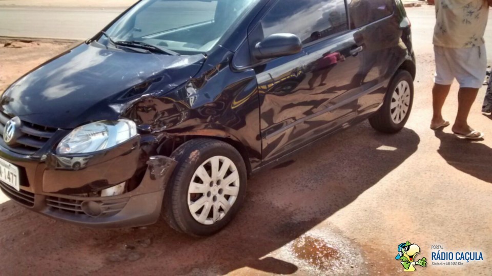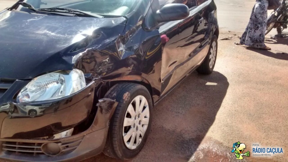 O condutor do veículo Gol trafegava na rua Alfredo Justino momento que não avistou a motociclista que seguia na avenida na traseira de uma caminhonete Hillux momento que a caminhonete passou o condutor do veículo Gol foi realizar a travessia e a motociclista colidiu contra a lateral do veículo.