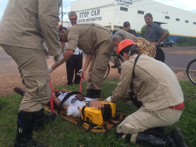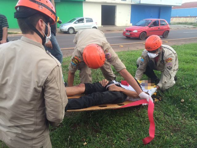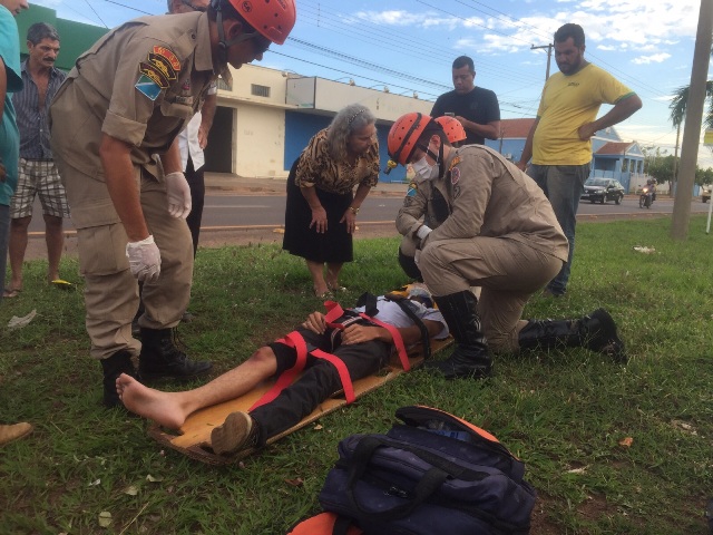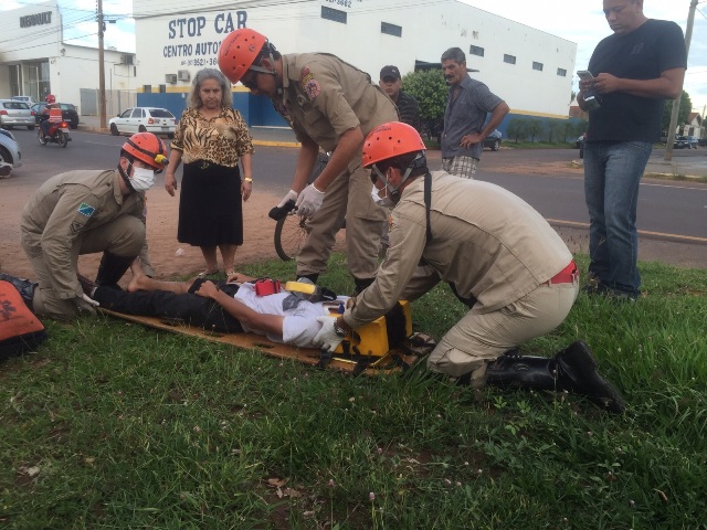 Corpo de Bombeiros é acionado no final da tarde desta terça-feira (8) para prestar os primeiros socorros a um jovem, de 20 anos, que sofreu um acidente de trânsito no bairro Jardim Alvitrado ao frear sua moto para evitar uma colisão com um veículo.