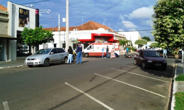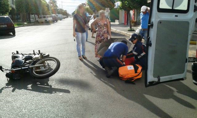 Uma mulher de 34 anos ficou ferida no início da manhã desta quinta-feira (03) ao se envolver em um acidente de trânsito na área central de Três Lagoas. Segundo dados da Polícia Militar, por volta das 07h15min, a vítima estava com sua moto Honda Titan 150 pela Rua Oscar Guimarães no sentido bairro/centro e ao atravessar a Rua Munir Thomé, não respeitou a sinalização de PARE e atingiu um veículo Fiat Stilo dirigido por uma mulher.