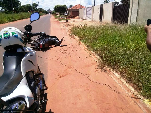 Um motociclista de 47 anos nasceu de novo nesta segunda-feira (21) ao ter o pescoço enrolado por fios de telefonia enquanto passava com sua moto pela Rua Crispim Coimbra, quase esquina com a Rua Manoel José de Lima no bairro Jardim das Paineiras.