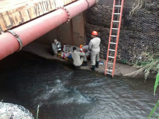 O motociclista Jorge Vitor Medeiros de Paula, 25 anos, ficou ferido após cair no córrego Córrego Sóter, na Rua Professor Luiz Alexandre de Oliveira, a Via Parque, em Campo Grande. Em menos de uma semana, este é o segundo caso de queda de veículo em córrego.