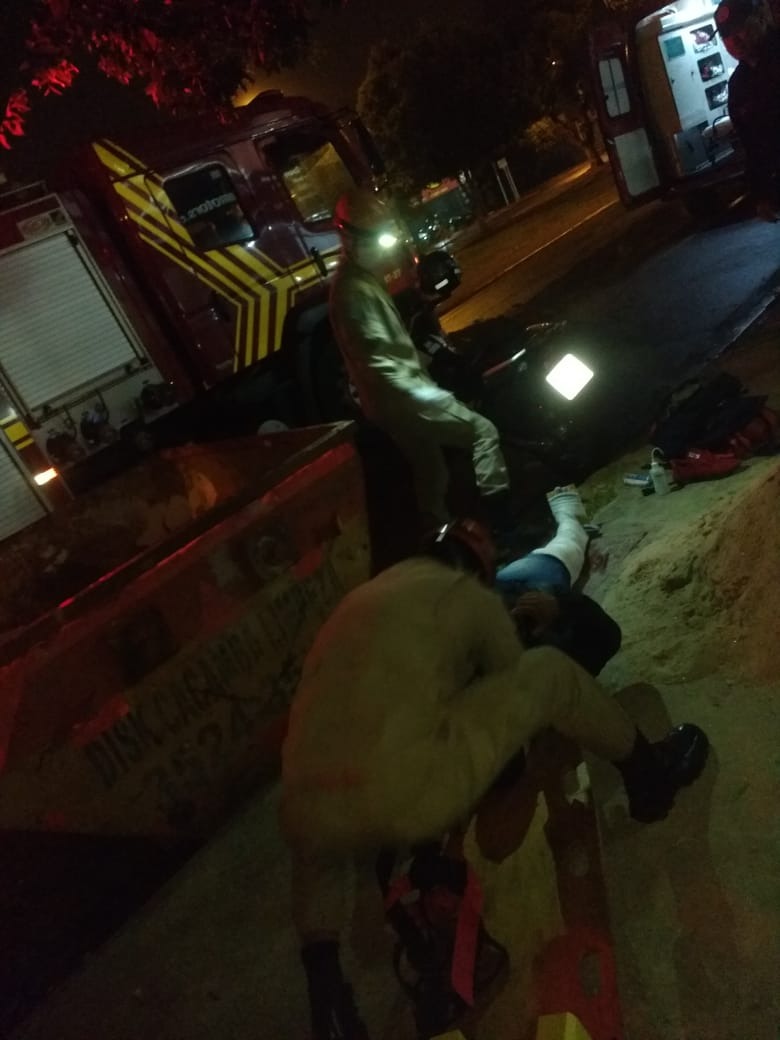 TRÊS LAGOAS: Após sofrer um acidente de trânsito, um motociclista, que não teve o nome nem a idade revelada, foi socorrido na noite desta terça-feira (02) por uma das equipes do Corpo de Bombeiros de Três Lagoas.