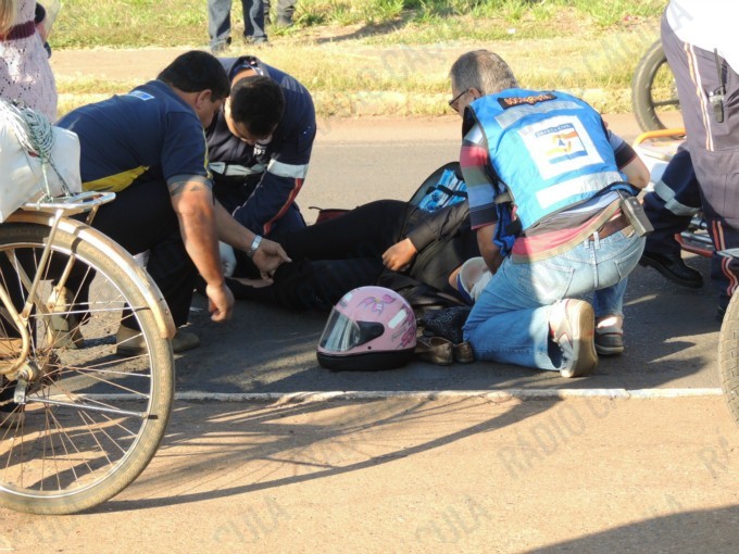 Na manhã desta segunda-feira (28), uma motociclista acabou indo parar no Hospital Auxiliadora depois de uma colisão.