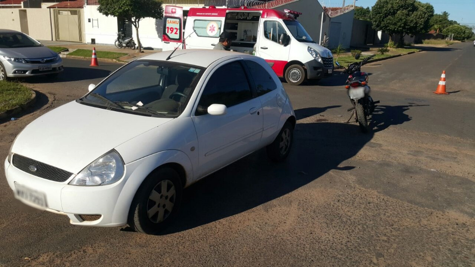 Segundo informações, um jovem de 21 anos estava trafegando em uma motocicleta Honda Bros pela rua Sebastião do Santos, quando ao chegar no cruzamento com rua Manoel de Oliveira Gomes, uma mulher de 47 anos que conduzia um veículo Ford Ka, teria atravessado a preferencial.