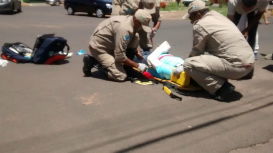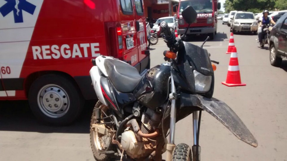 Neste sábado (28) por volta das 12h40min o Serviço de Atendimento Móvel de Urgência (SAMU) foi solicitado a comparecer a avenida Filinto Müller cruzamento com Oreste Prata Tibery, onde aconteceu um acidente envolvendo uma motocicleta NXR de cor preta e um veículo Gol de cor branca.
