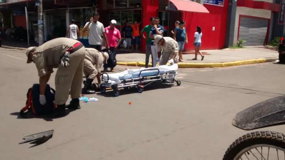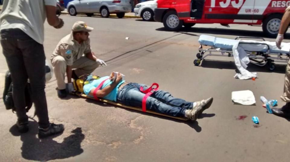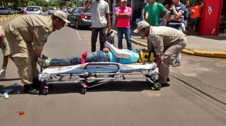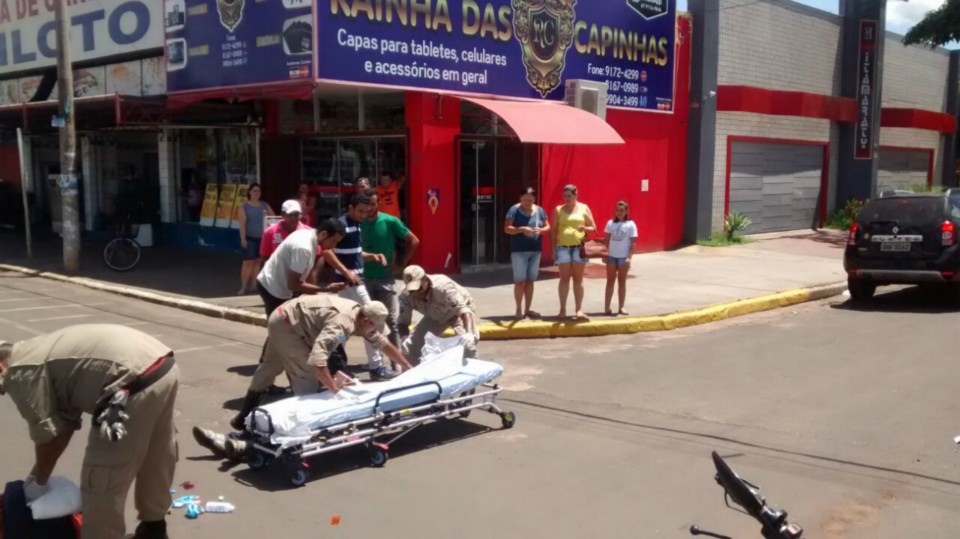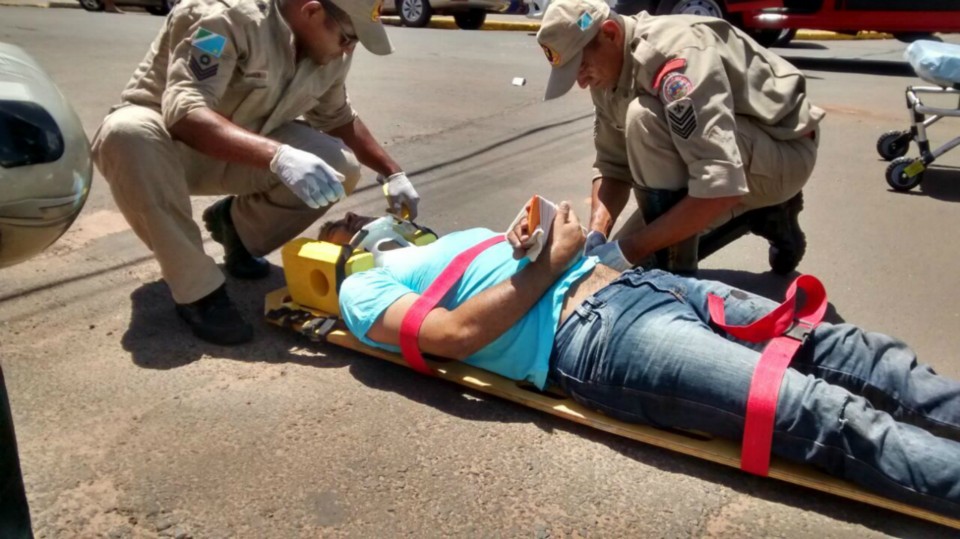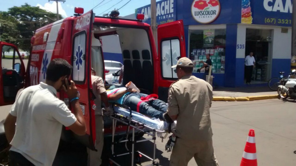 O motociclista caiu ao solo sofrendo uma possível fratura no membro inferior esquerdo sendo socorrido pelo Corpo de Bombeiros e encaminhado ao Hospital Auxiliadora.
