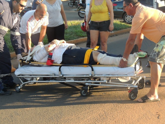 Motociclista sofre fratura exposta na perna após acidente em Três Lagoas