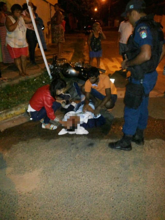 Motociclista foi orientado por moradores e pela Polícia Militar até a chegada do Samu. (Fotos: Rádio Caçula).