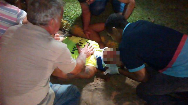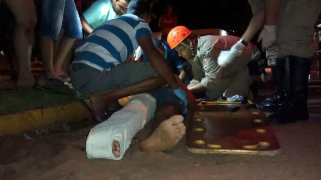 Os socorristas do corpo de bombeiros chegaram rapidamente ao local e prestaram os primeiros atendimentos á vítima, que apresentava uma lesão gravíssima no pé direito, sendo uma fratura exposta importante. A vítima foi imobilizada conforme protocolo e encaminhada ao Hospital Auxiliadora para atendimento médico especializado.