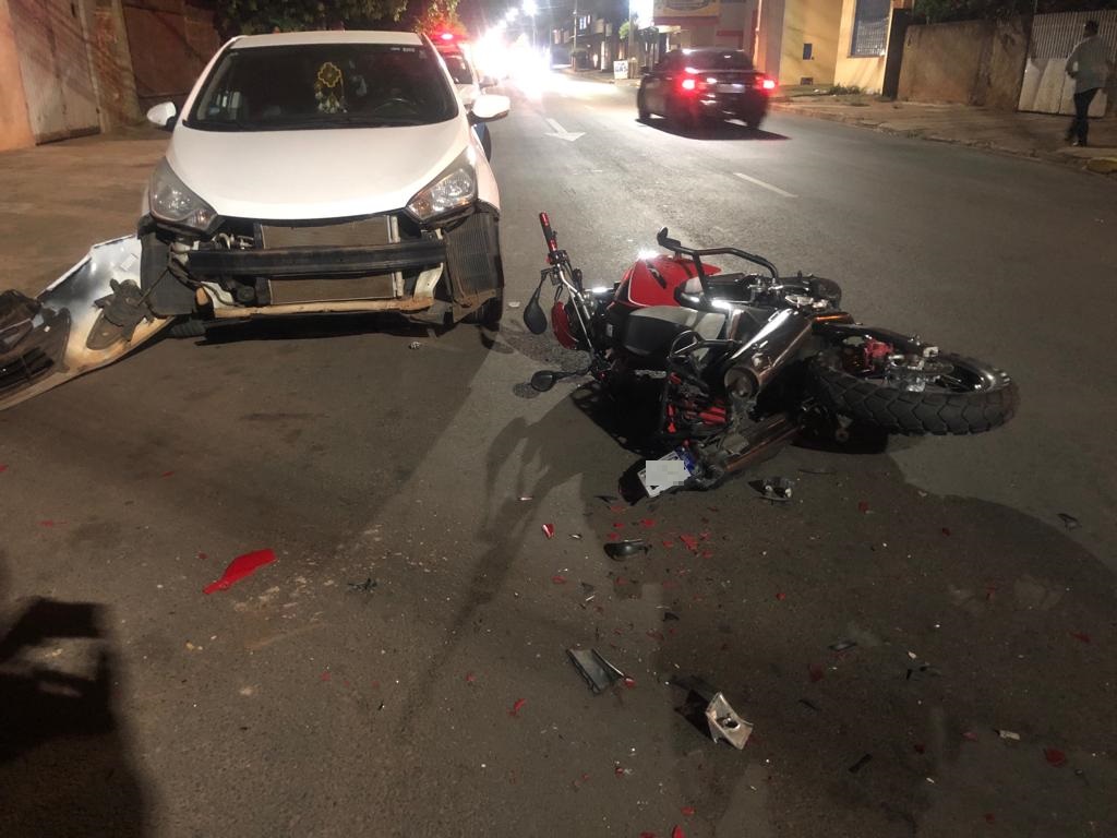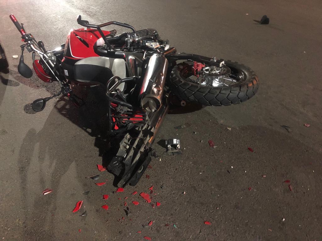 Ainda após batida, condutor da moto teve várias escoriações pelo corpo, além de uma suspeita de fratura frontal no crânio, permanecendo em observação.