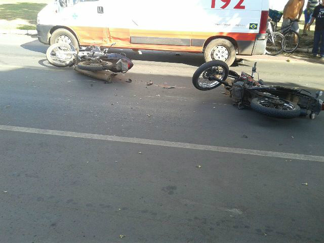 Uma colisão frontal entre dois motoqueiros na Avenida Aldair Rosa de Oliveira deixou os homens feridos na manhã desta quarta-feira (7) e precisaram ser socorridos pelos enfermeiros do SAMU (Serviço de Atendimento Móvel de Urgência).