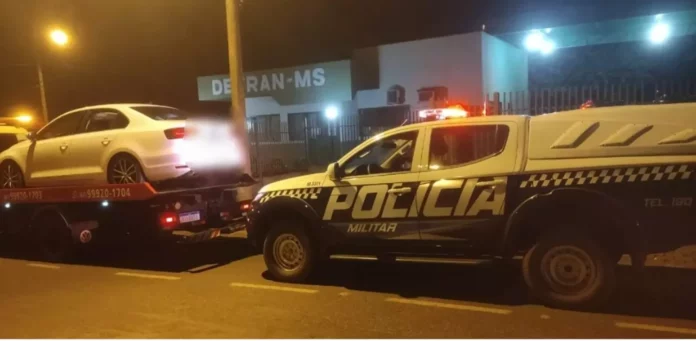 Os policiais foram acionados por populares, relatando que um indivíduo conduzindo um veículo VW Jetta de cor branca estaria realizando perturbação do sossego com barulho do escapamento. A guarnição se deslocou em rondas e pela Avenida Mato Grosso se deparou com o veículo, transitando com os faróis apagados.