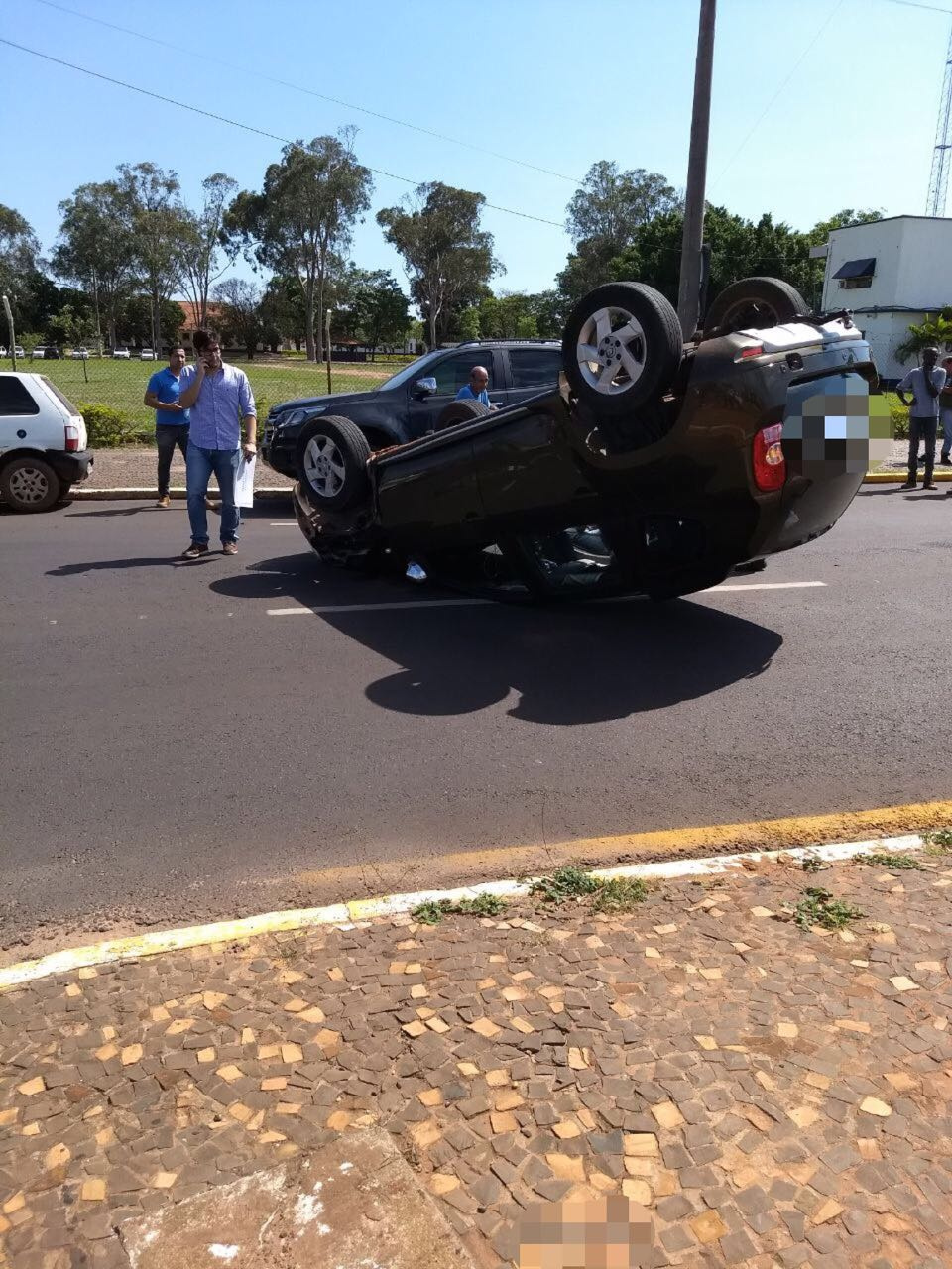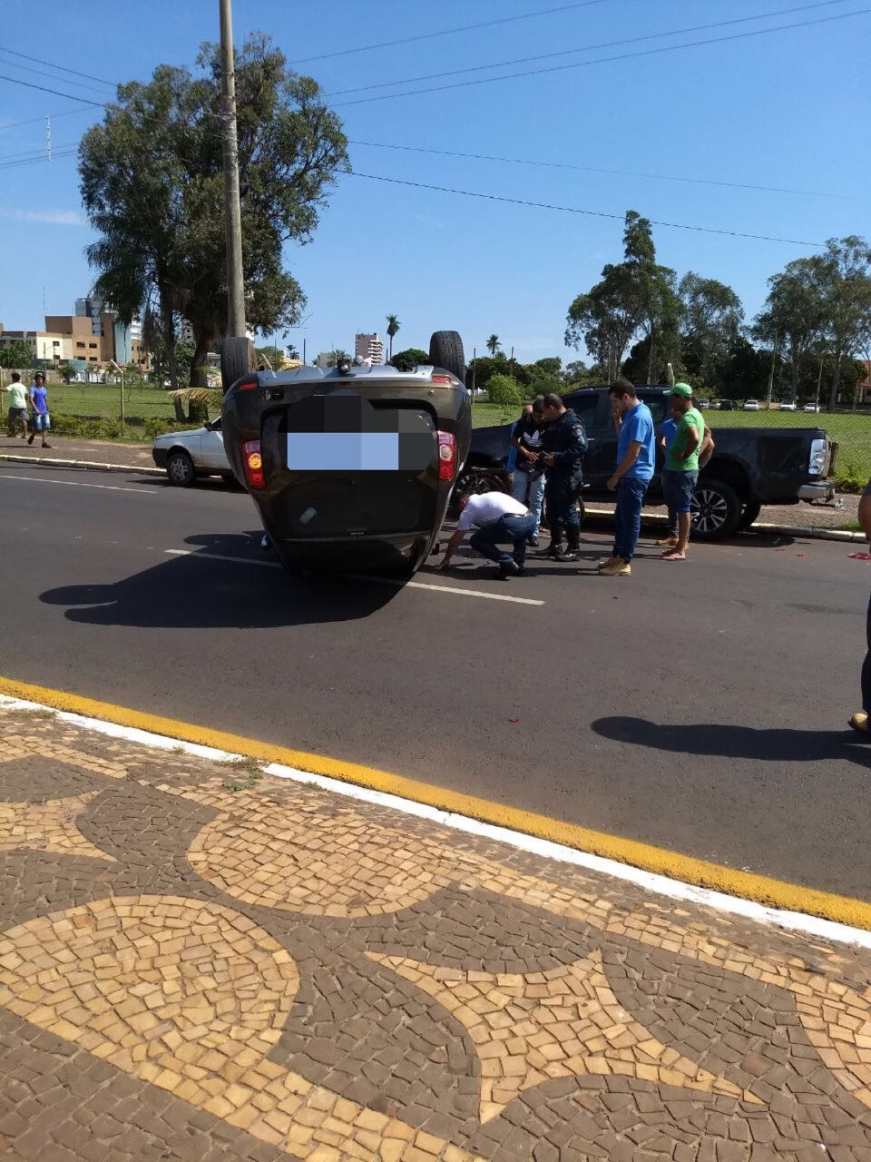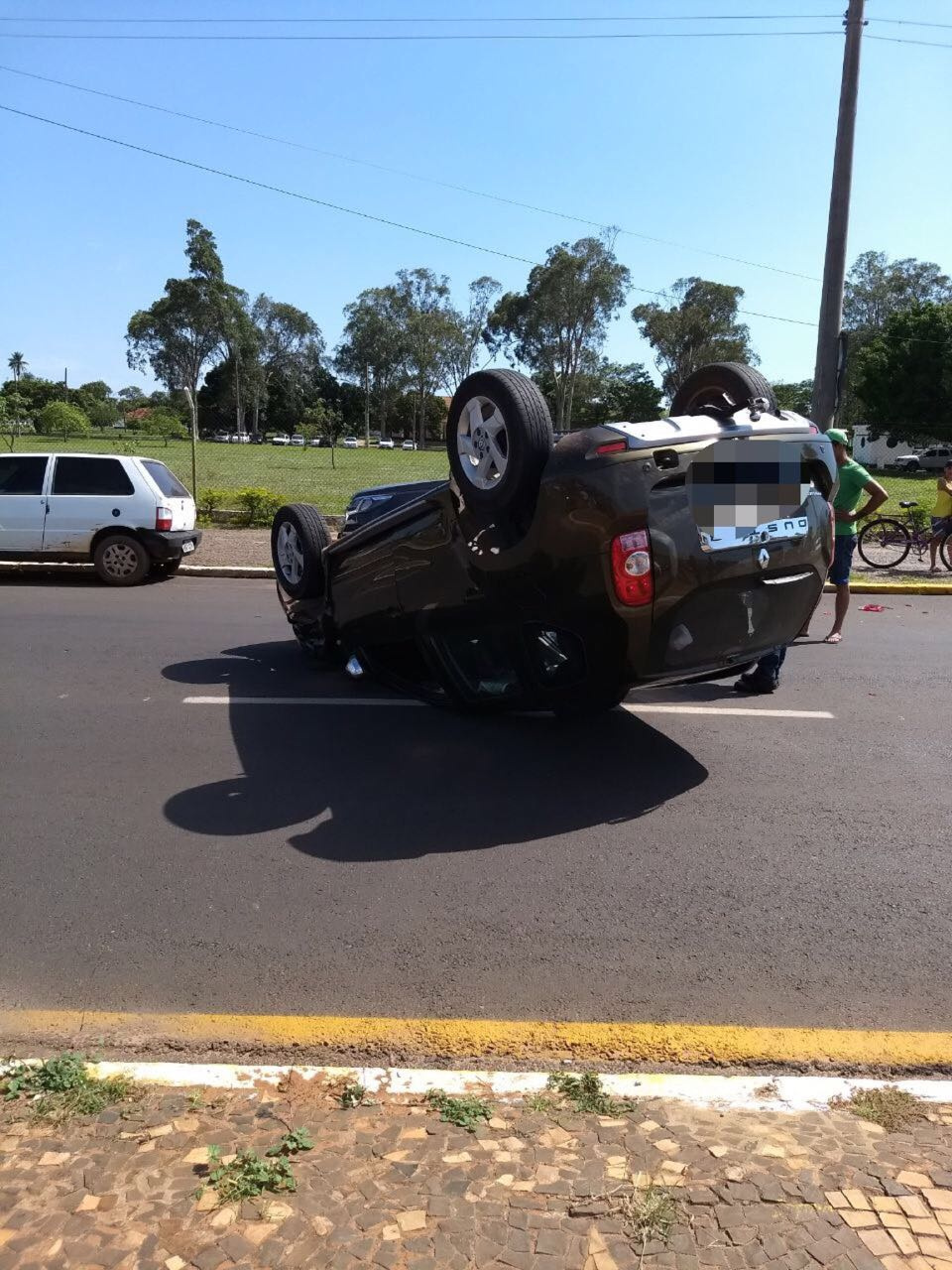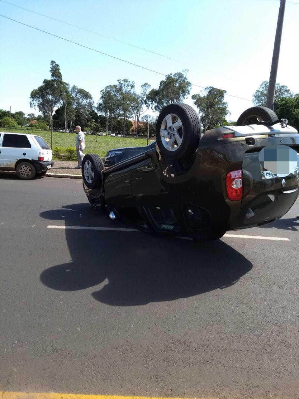 Um capotamento dentro da cidade chamou a atenção dos motoristas que passavam pela Avenida Capitão Olinto Mancini na manhã desta quinta-feira (16).