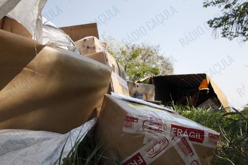Várias encomendas foram danificadas e ficaram espalhadas as margens da rodovia.