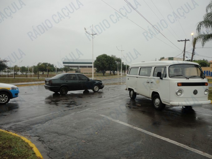 A falta de atenção de motoristas em dias chuvosos faz com que pequenos “deslizes” acarretem prejuízos aos condutores. Foi o que aconteceu por volta das 15:00 horas de hoje, quando um veículo Kombi seguia pela Avenida Aldair Rosa de Oliveira sentido bairro/centro e ao fazer o contorno da rotatória localizada no inicio da Avenida Capitão Olinto Mancini, acabou sendo surpreendido por outro veículo, onde aconteceu a colisão.