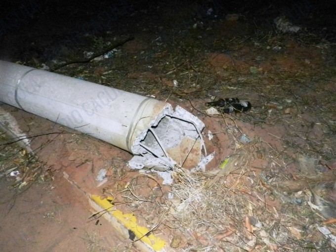 Com a colisão, em um ato de desespero, o homem engatou marcha ré e tentou deixar o local do acidente, mas os fios de alta tensão que estavam energizados se enroscaram no automóvel e diante isto, puxou a rede elétrica derrubando um segundo poste, que estava logo atrás.