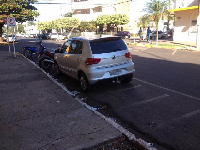 Motorista desrespeita sinalização e estaciona veiculo sobre vagas de motos