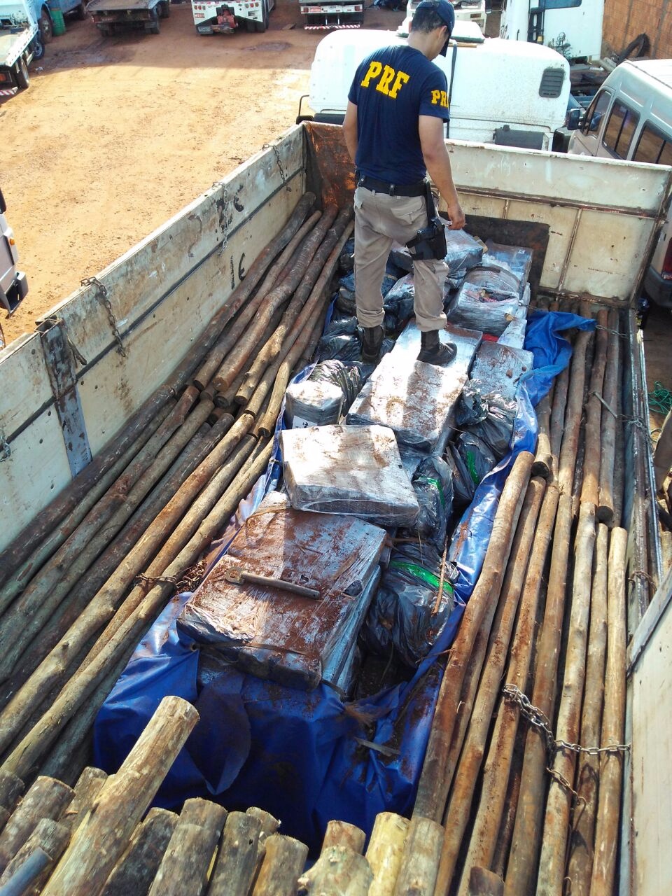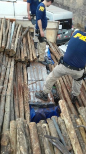 Depois de retirar algumas toras de eucalipto, constatou-se a existência de inúmeros fardos de substância com características de maconha, que totalizou 2737,5 kg, maior apreensão da PRF no ano na região de Três Lagoas/MS.