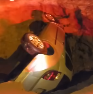 No local, estaria acontecendo uma obra, onde a empresa terceirizada não teria sinalizado adequadamente a região, segundo alguns moradores do bairro. Com a chuva que caía no momento, o buraco acabou aumentando, virando uma enorme cratera, causando o acidente com o veículo.