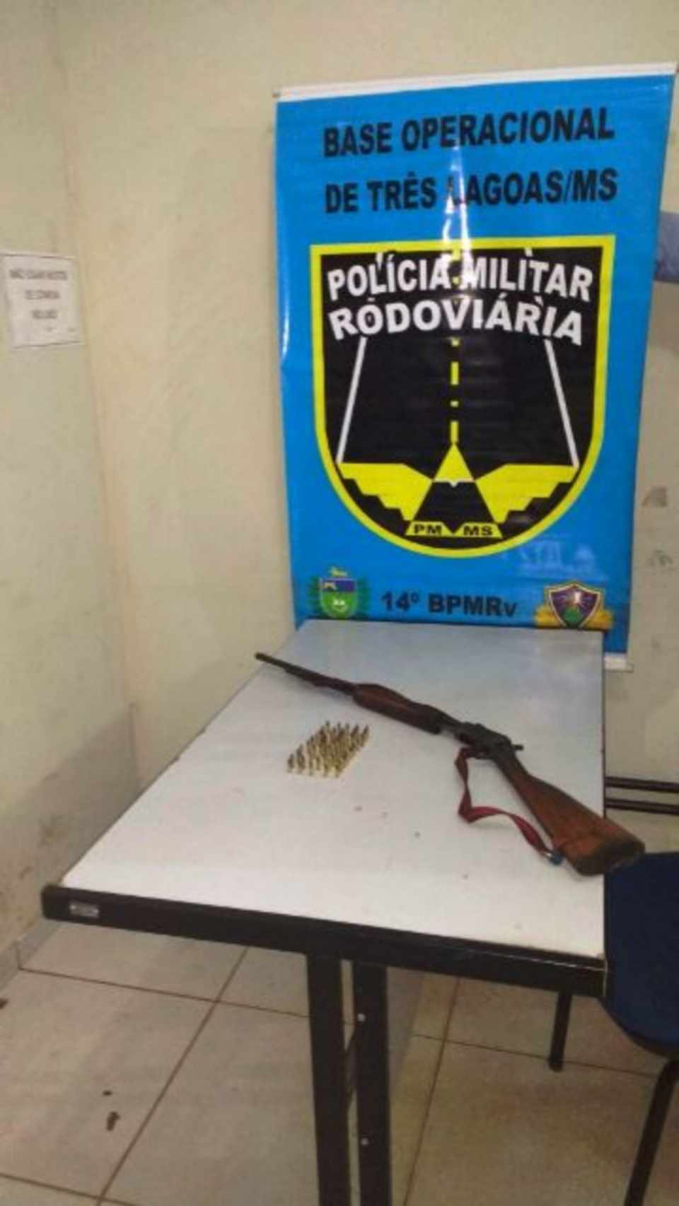 Policiais rodoviários estaduais (14º PMRE) de Três Lagoas apreenderam na noite deste domingo (18) uma arma de fogo e munições que estavam escondidas em um fundo falso de uma camionete Chevrolet C20 de cor preta.