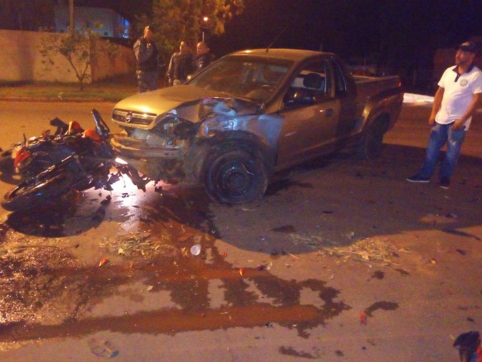 Uma mulher de 29 anos ficou ferida em um acidente de trânsito no bairro Jardim Alvorada, em Três Lagoas (MS). Ela conduzia uma moto, quando foi atingida por um carro, dirigido por um homem de 41 anos, que estava embriagado.