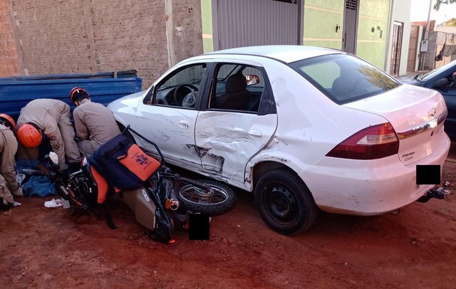 TRÊS LAGOAS (MS) – Um acidente de trânsito registrado na manhã desta quinta-feira (28) deixou um motociclista ferido no bairro Santa Rita, em Três Lagoas (MS). O acidente aconteceu quando o condutor de um veículo Prisma fez a conversão para entrar em uma garagem, na rua Alexandre Abrão.