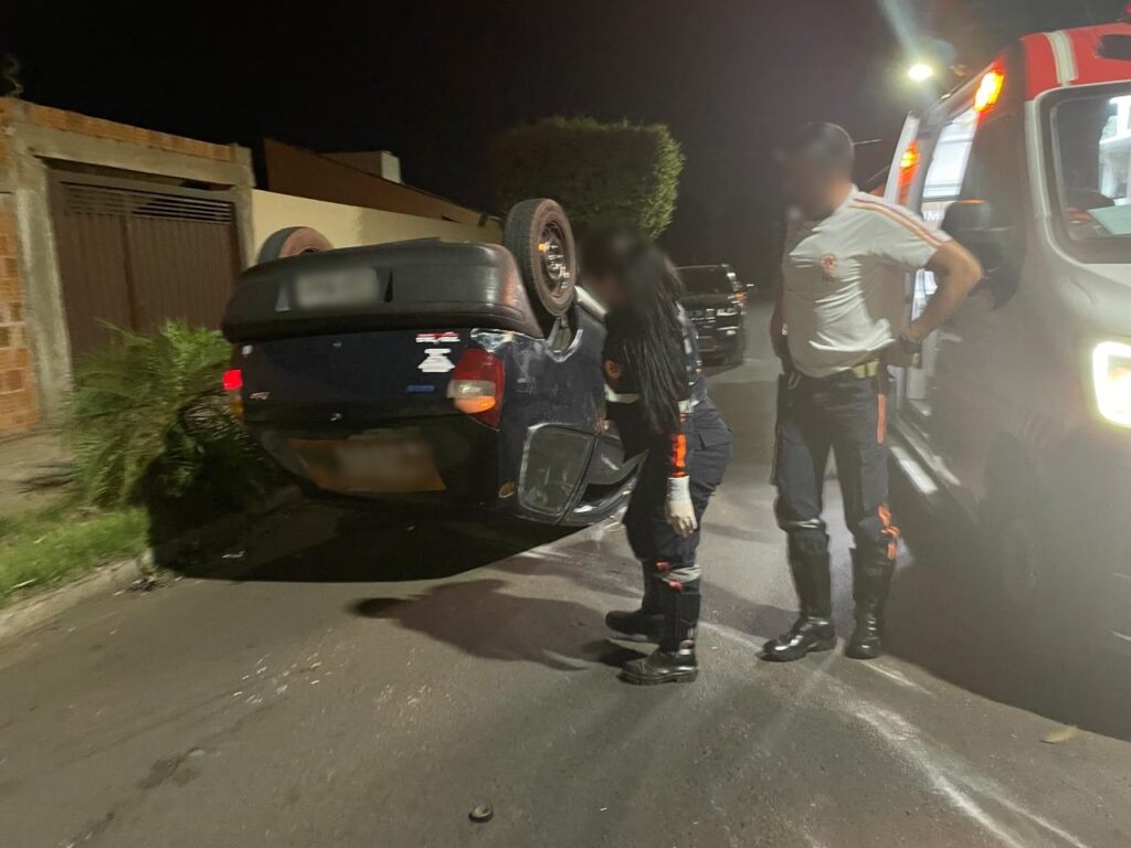 Motorista foge a pé após capotar carro durante a madrugada em rua do Santos Dumont