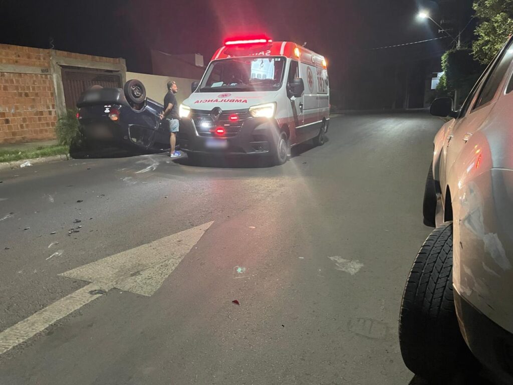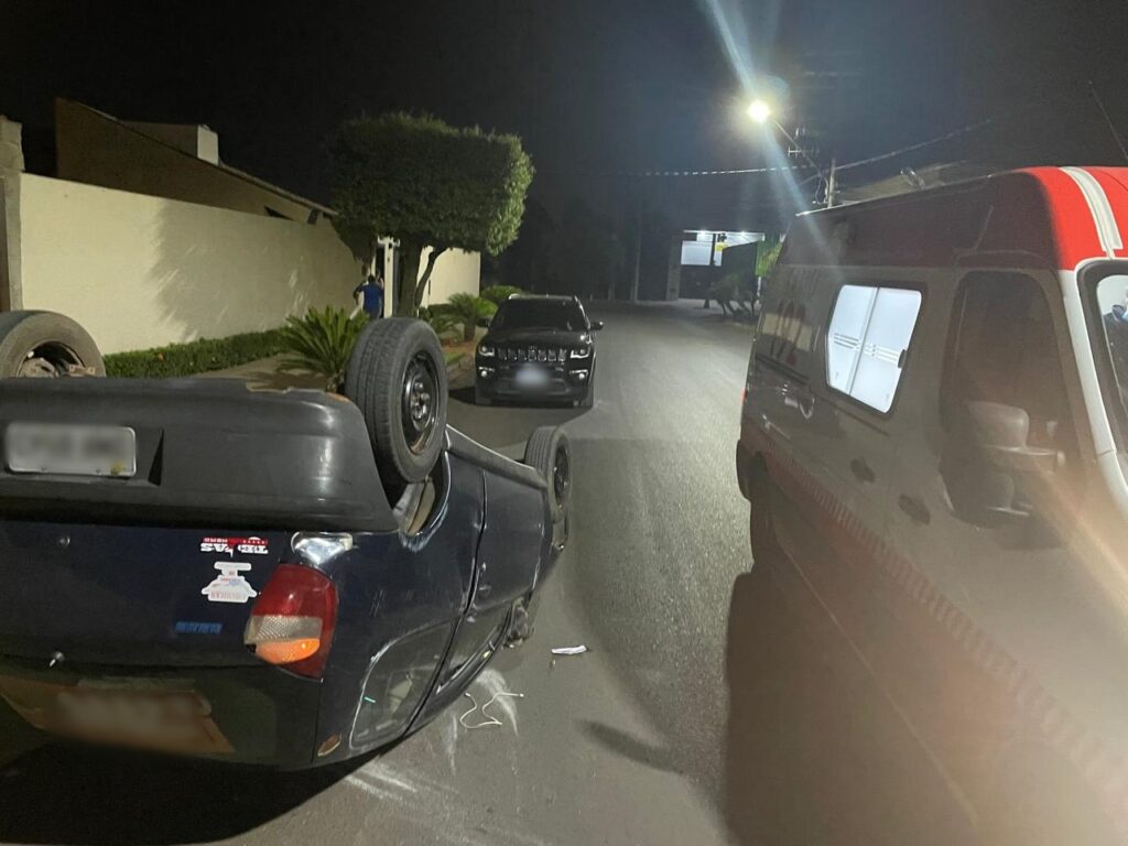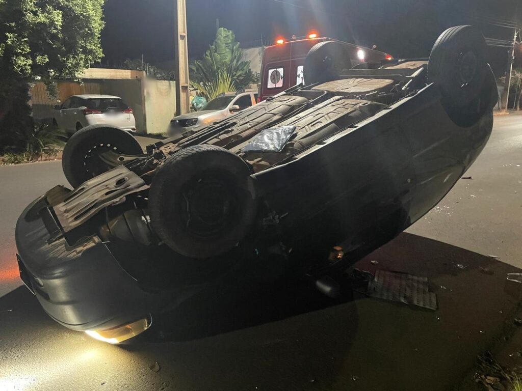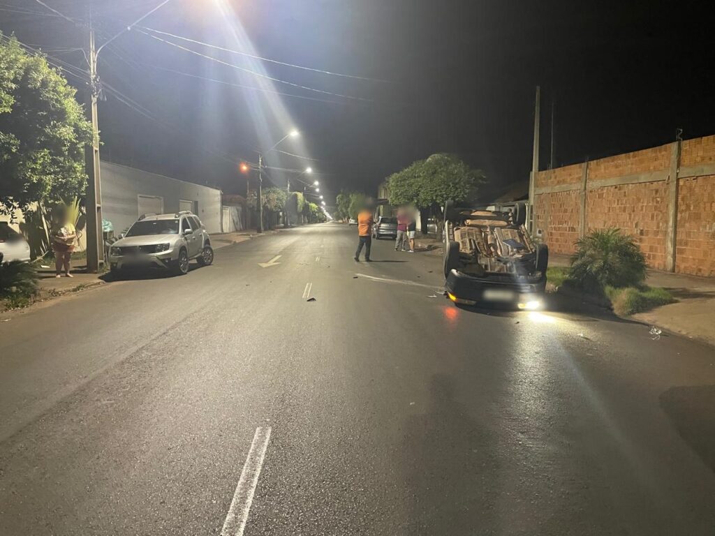 Na madrugada desta terça-feira, 08, por volta das 2h, um grave acidente foi registrado no bairro Santos Dumont II, em Três Lagoas. O motorista de um Fiat Pálio perdeu o controle do veículo ao trafegar pela Rua Yamaguti Kankit e colidiu violentamente com uma Renault Duster que estava estacionada na via, próximo à rua Maria Guilhermina Esteves. O impacto foi tão forte que o Pálio acabou capotando.