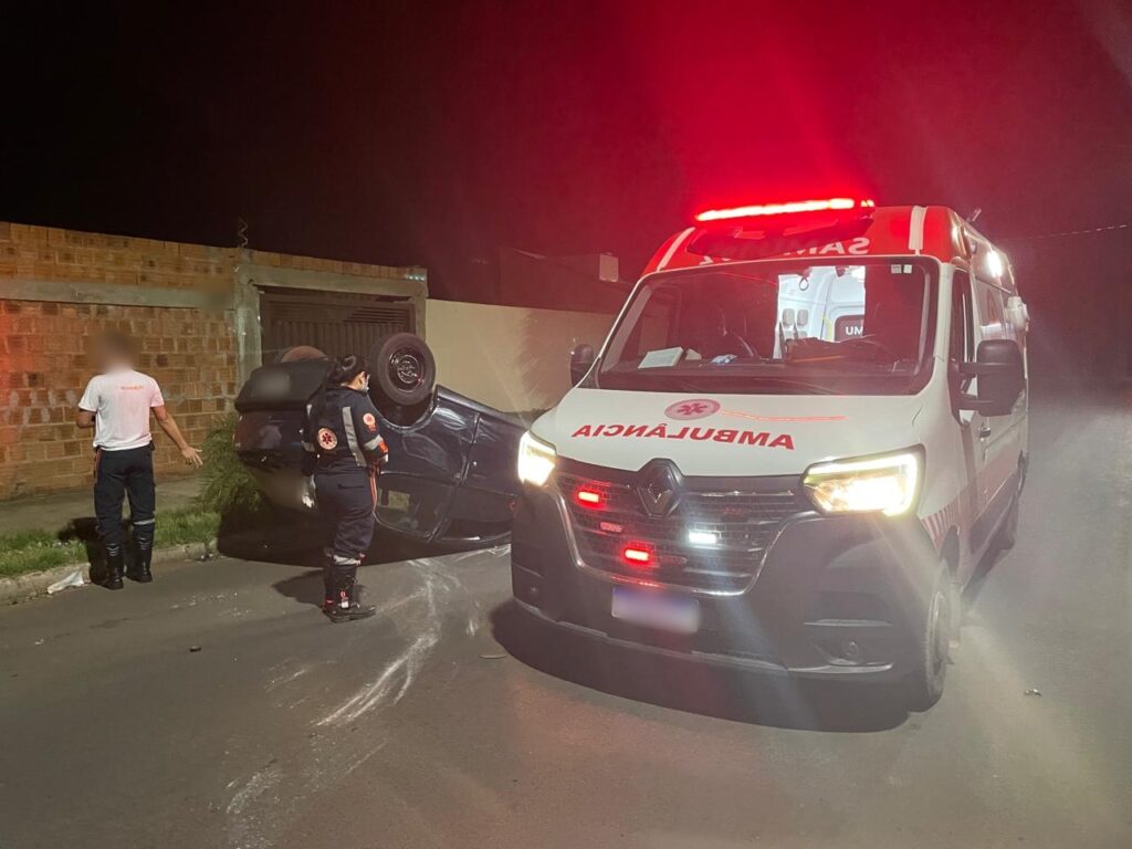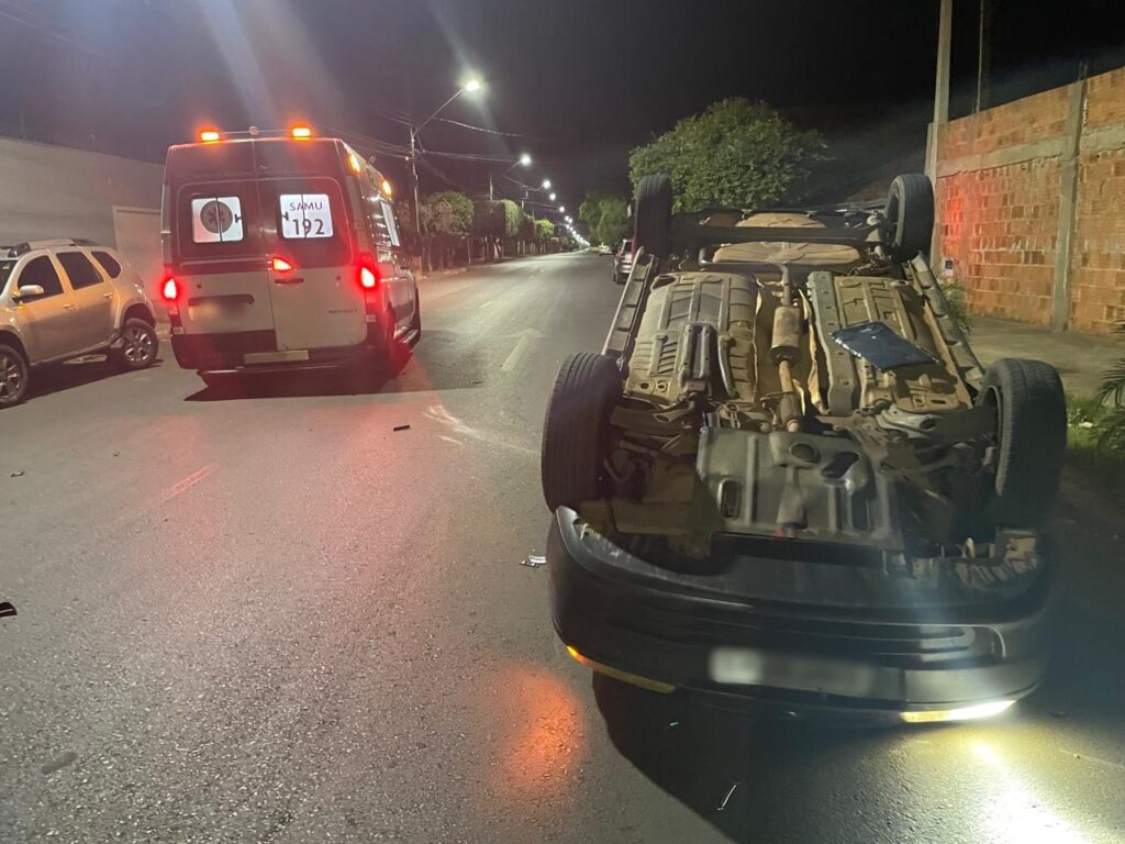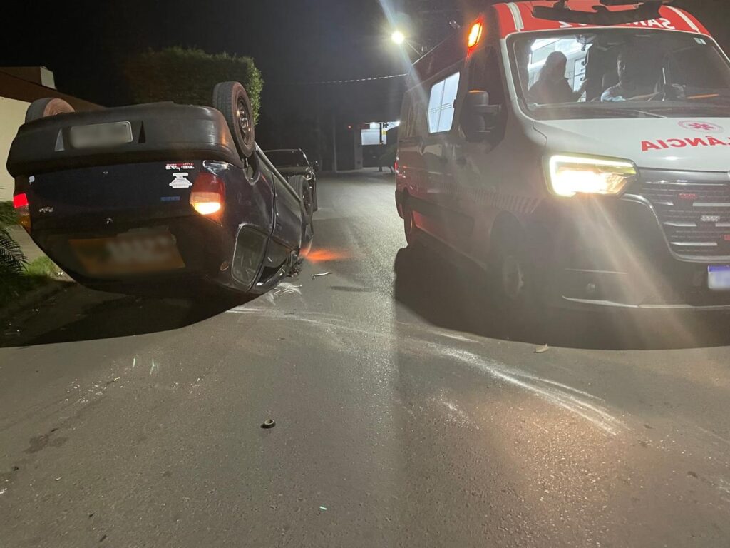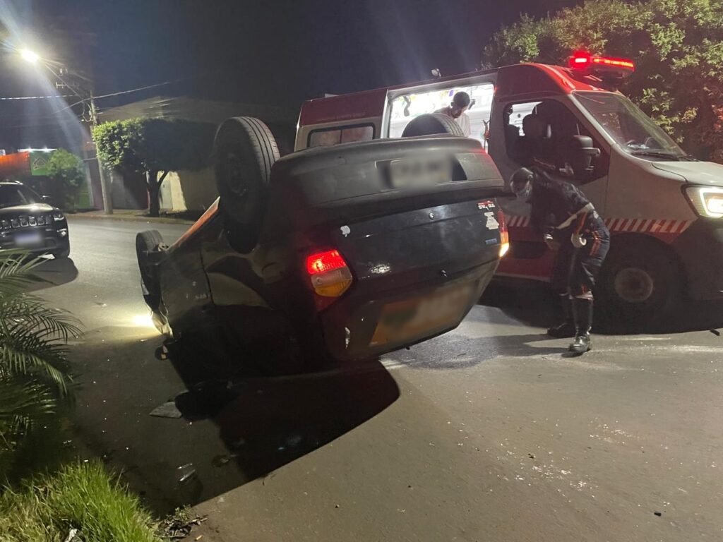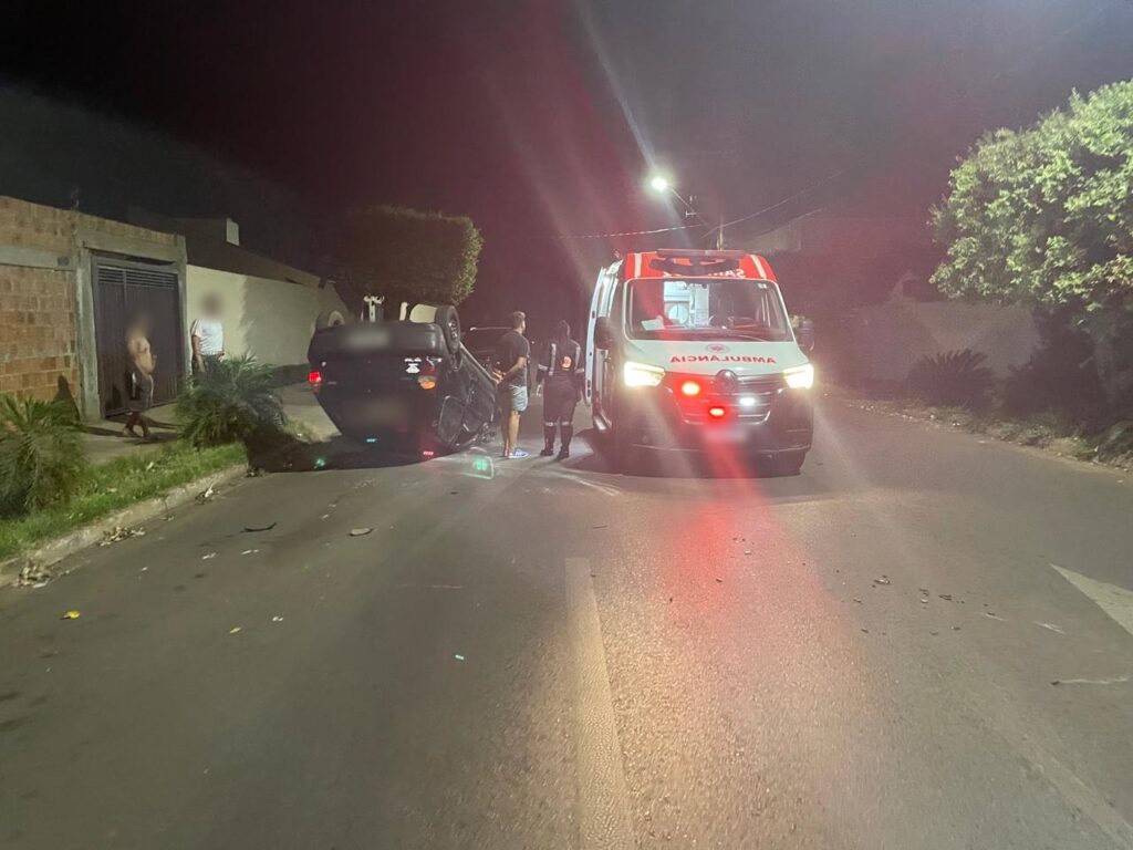 Na madrugada desta terça-feira, 08, por volta das 2h, um grave acidente foi registrado no bairro Santos Dumont II, em Três Lagoas. O motorista de um Fiat Pálio perdeu o controle do veículo ao trafegar pela Rua Yamaguti Kankit e colidiu violentamente com uma Renault Duster que estava estacionada na via, próximo à rua Maria Guilhermina Esteves. O impacto foi tão forte que o Pálio acabou capotando.