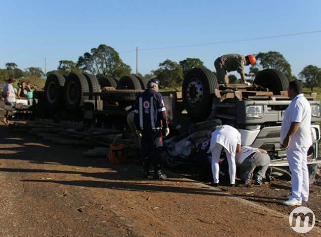 Por volta das 5h50, carreta bitrem carregada com palanques de eucalipto tombou na Rodovia BR-262, entre Ribas do Rio Pardo e Campo Grande, a aproximadamente 80 quilômetros da Capital. O motorista, identificado como Wesley Souza Santos, de 24 anos, morreu no local. A outra vítima identificada é Ernanes Nogueira, de 27 anos, que foi resgatado com ferimentos.