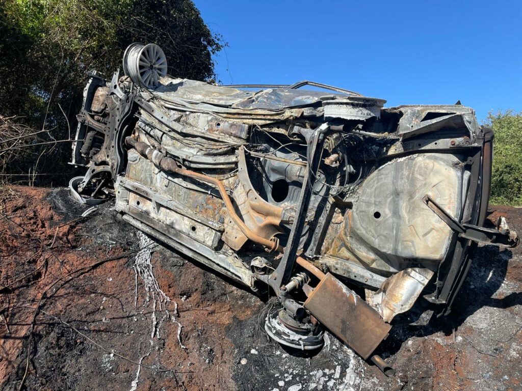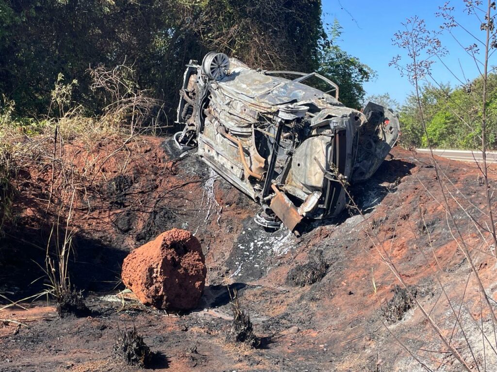 Um grave acidente registrado no início da manhã desta quarta-feira, 22, terminou em tragédia na BR 158, próximo a Três Lagoas. Um veículo Toyota Corolla saiu da pista, capotou e pegou fogo, resultando na morte do motorista, que ficou completamente carbonizado dentro do automóvel.