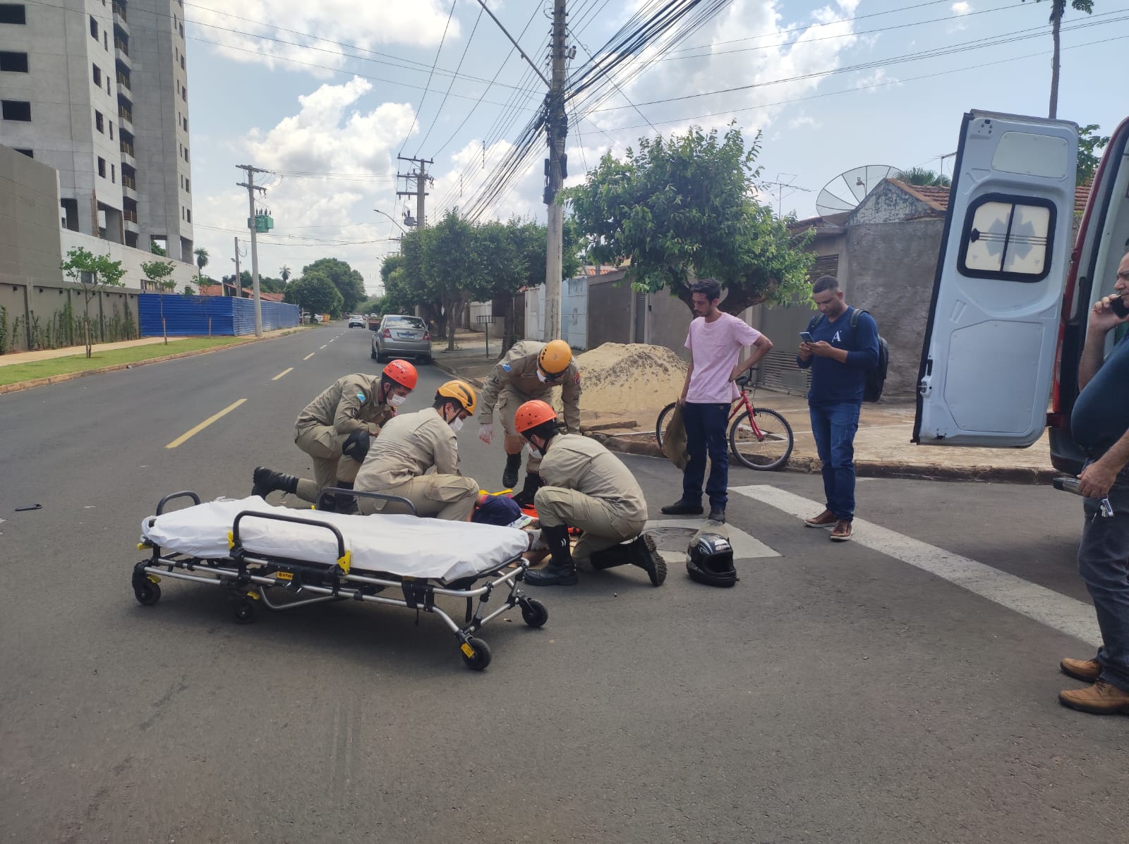 Motociclista, que admitiu dirigir sem CNH teve uma fratura no fêmur, onde foi necessário ser transferido para o Hospital Auxiliadora.