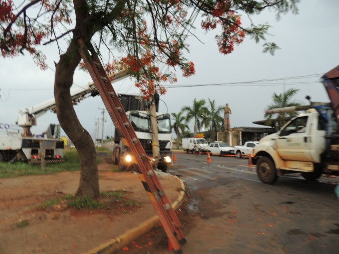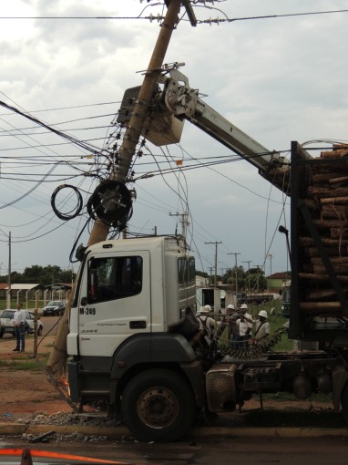 Três equipes sendo duas da Elektro e uma de telefonia celular estiveram no local para realizarem a troca do poste e a manutenção dos cabos de energia e telefones.