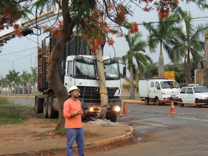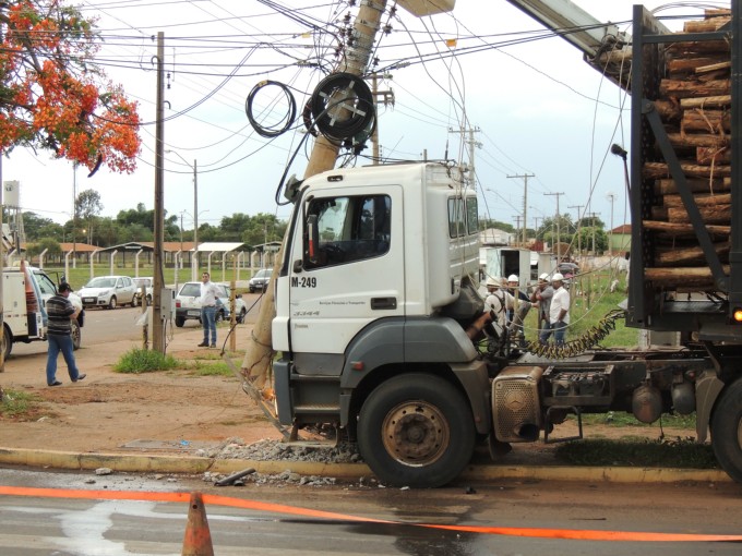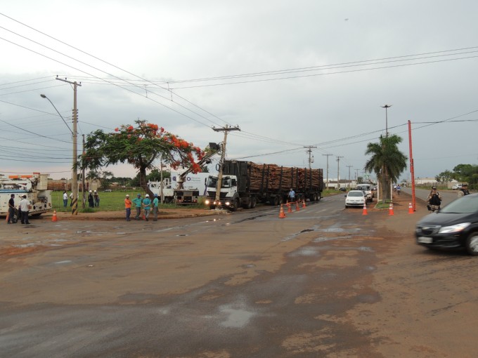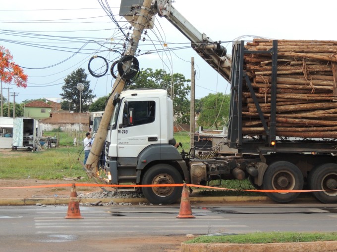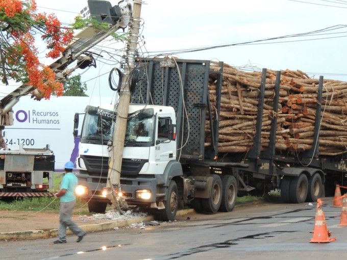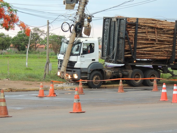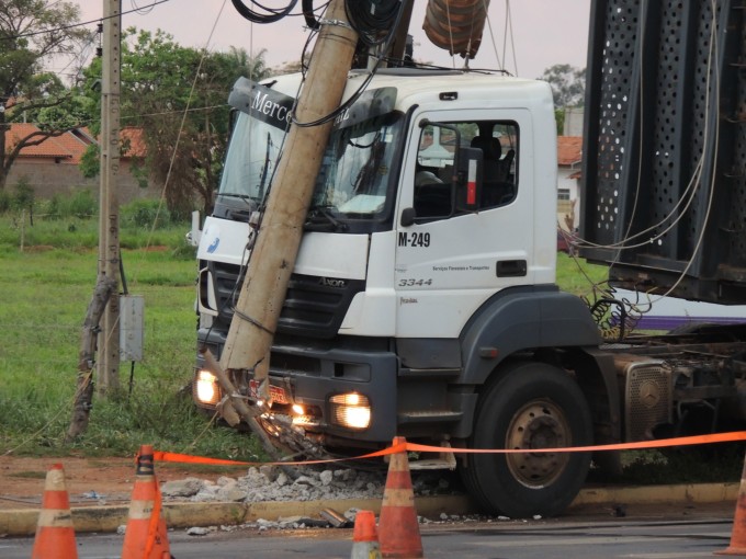 Um caminhão do tipo bi-trem colidiu contra um poste de energia no cruzamento entre as Avenidas Ranulpho Marques Leal e Egidio Ribeiro no fim da tarde desta sexta feira (06).
