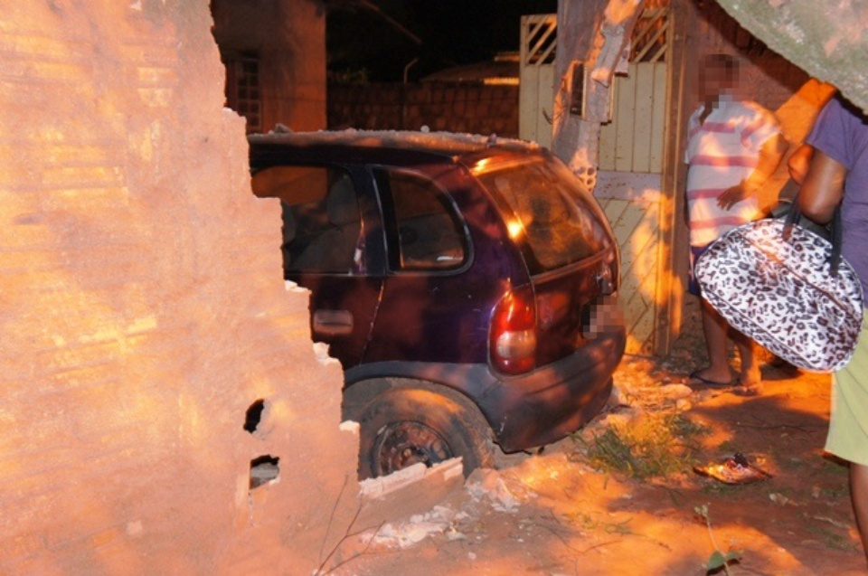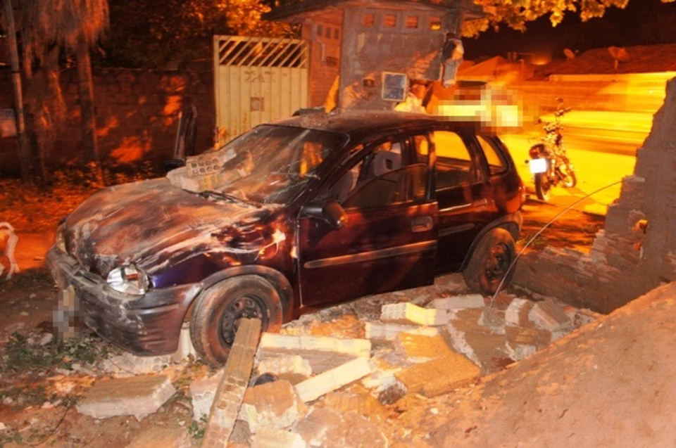 Descontrolado, o carro atingiu e derrubou o muro de uma residência, onde estava a dona de casa V.C de 48 anos. Por sorte, a dona de casa e o condutor do carro não ficaram feridos.