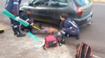 Condutor do Fiat Pálio dirigia pela contramão e colidiu com motocicleta, onde vítimas foram socorridas pelo SAMU e levadas ao hospital