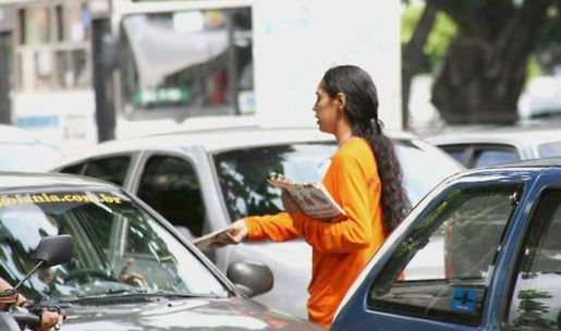 Muitos motoristas já se acostumaram com a entrega de materiais publicitários que são distribuídos na maioria dos semáforos existentes em Três Lagoas.