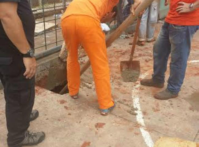 “Vamos instaurar os procedimentos de praxe, como uma sindicância para apurar os fatos, e tentar identificar o preso responsável pelo buraco”, fala Stropa. O buraco já começou a ser tampado com concreto.